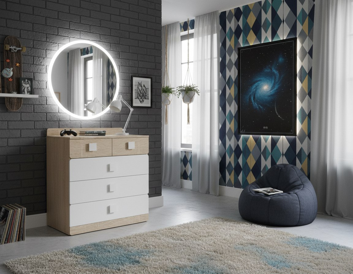 Оттенок натурального дерева "дуб сонома" дает ощущение комфорта и единения с природой, а воздушный белый цвет в интерьере работает как основа для ярких штрихов.