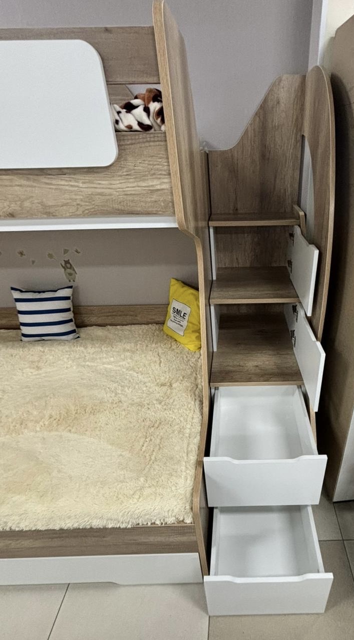 Вместо них - цельный и прочный настил из ЛДСП, который выдерживает сверхвысокую нагрузку и позволяет расположиться даже взрослому с ребенком.
