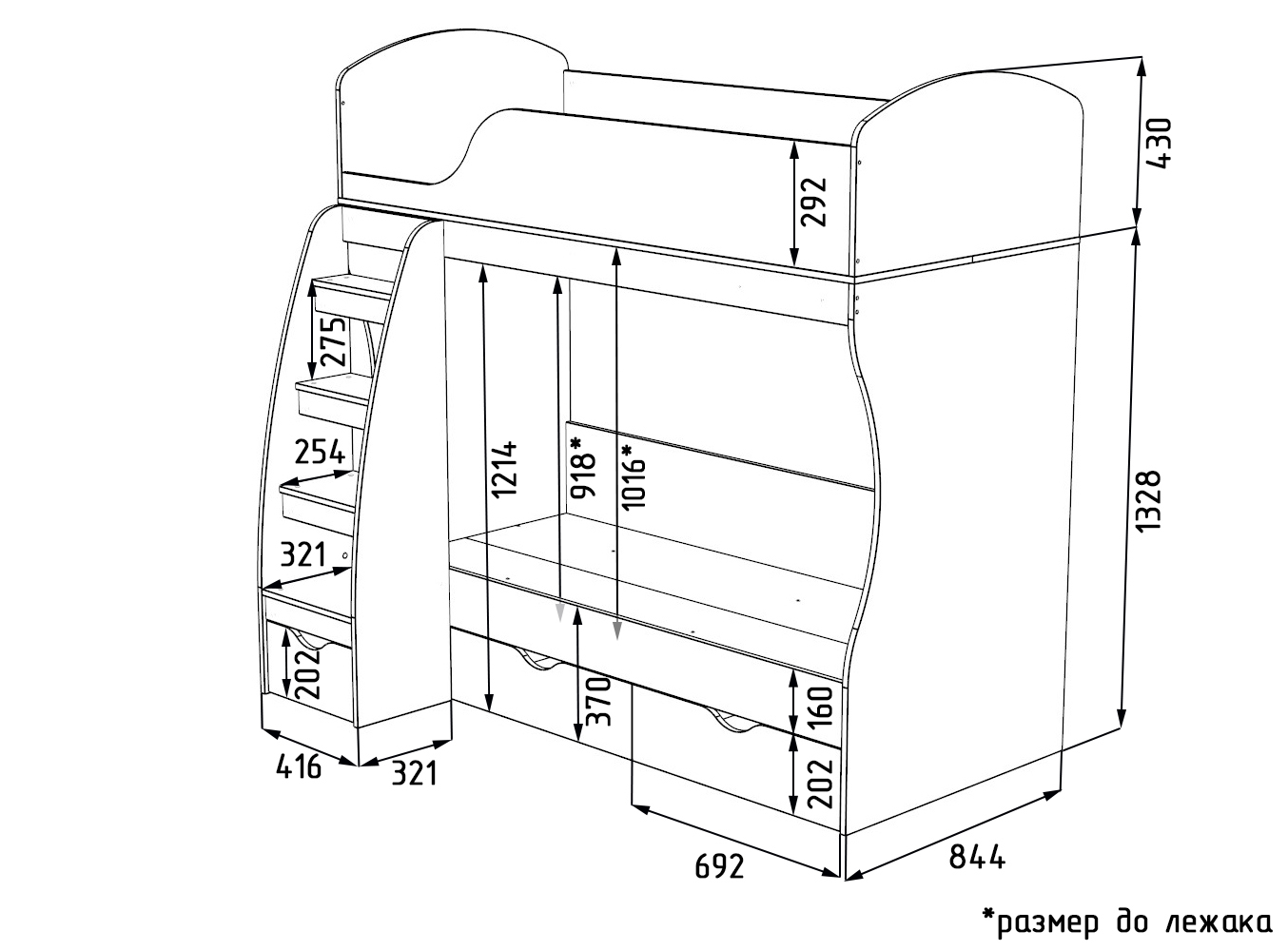 * Дополнительно к нижней кровати можно приобрести съемный бортик-ограничитель.