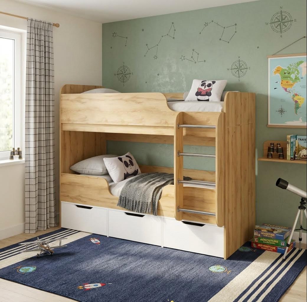 Компактная двухъярусная кровать Малыши Двойняшки создана специально для небольших помещений.