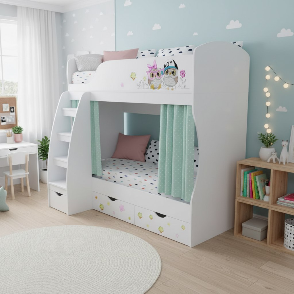 * Дополнительно к нижней кровати можно приобрести съемный бортик-ограничитель.