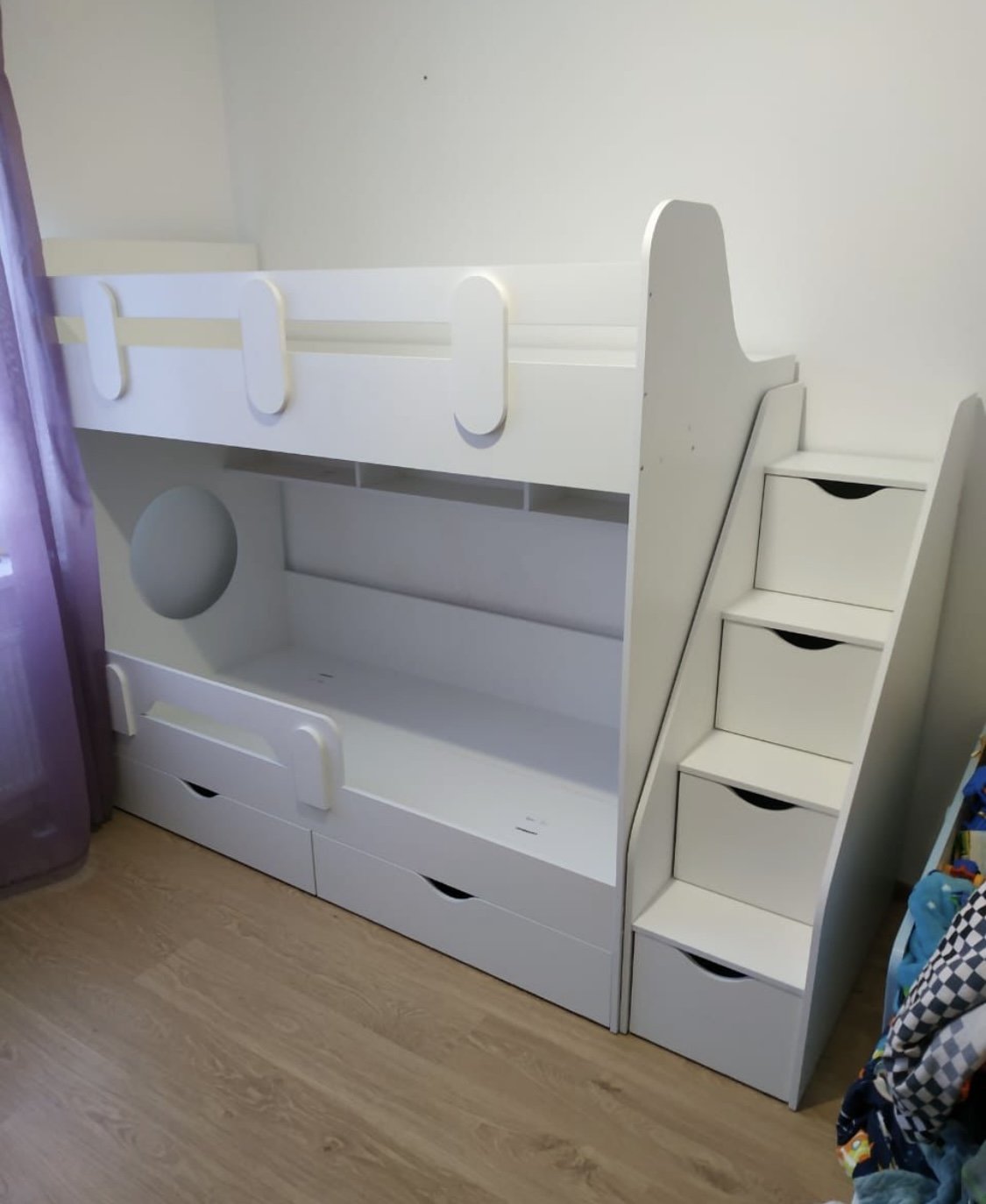 Высокая нагрузка на спальные места. Дно всех выдвижных ящиков прочное - выполнено из ЛДСП 16 мм (не ДВП!)