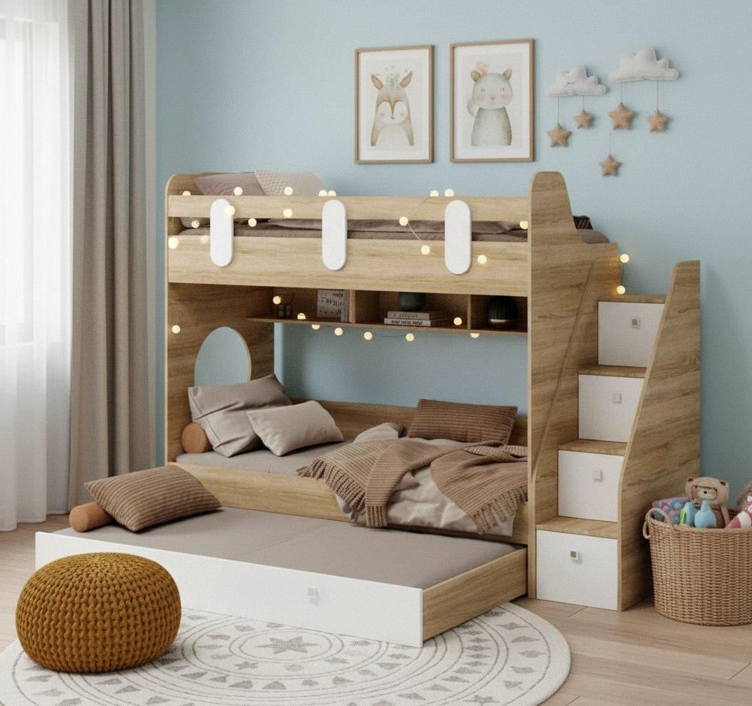 Вместо них - цельный и прочный настил из ЛДСП, который выдерживает сверхвысокую нагрузку и позволяет расположиться даже взрослому с ребенком.