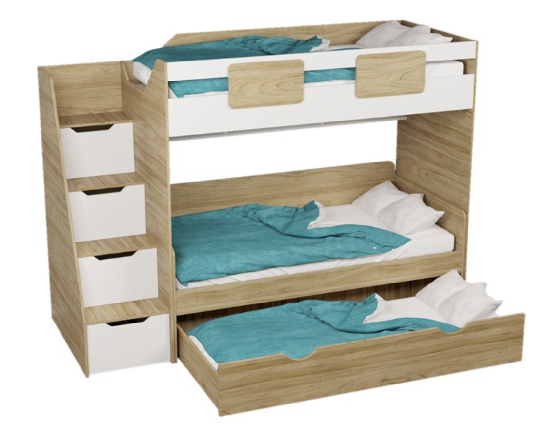 Кровать-чердак Мозаика + кровать Двушка в цвете вяз швейцарский