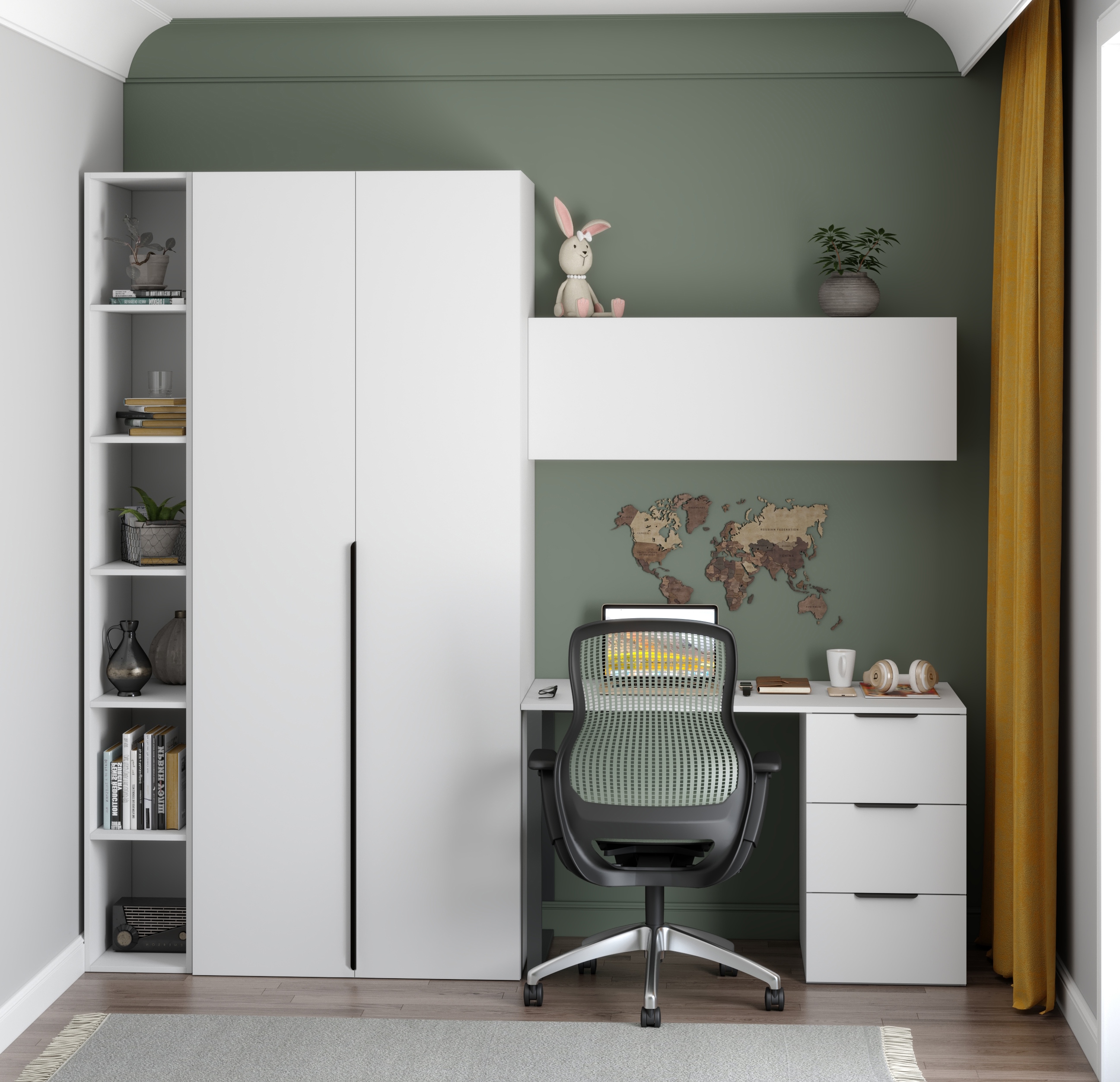 стеллаж переходной + шкаф + стол + полка настенная