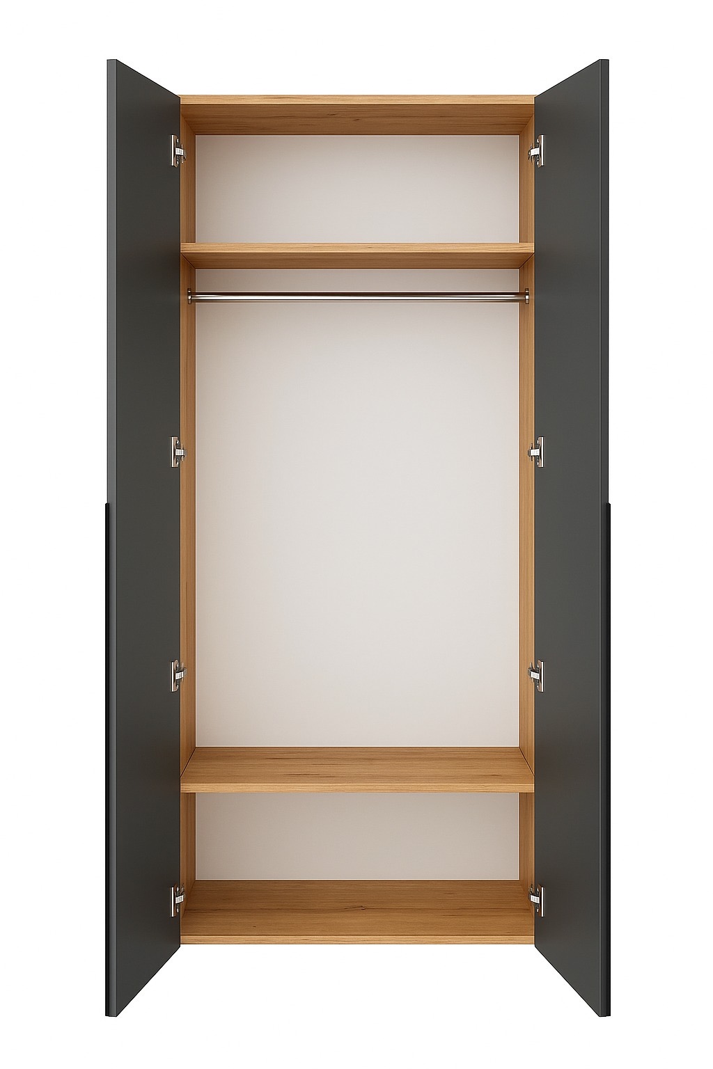 Распашной двухстворчатый шкаф + переходной стеллаж + угловой шкаф + пенал коллекции Брайт Графит