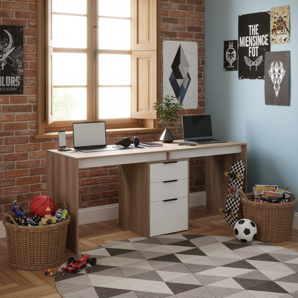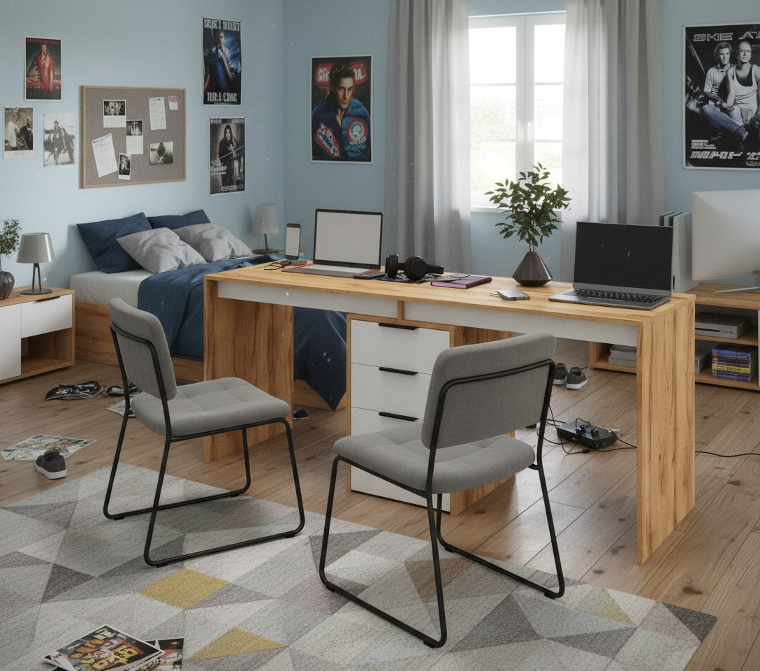 Стол письменный Тандем украсит современную детскую комнату и поможет организовать комфортный учебный процесс для двоих детей.