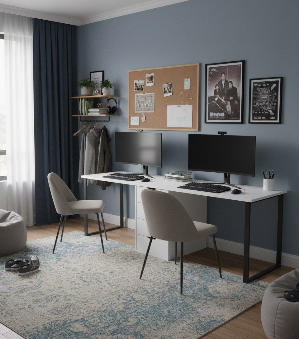 Стол для двоих детей - отличное решение для небольших комнат.