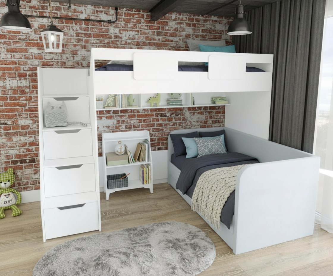 —Комплект: кровать-чердак Мозаика-2 + кровать Nepos + стеллаж