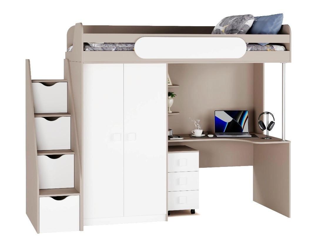 Кровать-чердак с рабочим пространством и шкафом – идеальное решение для детской комнаты.
