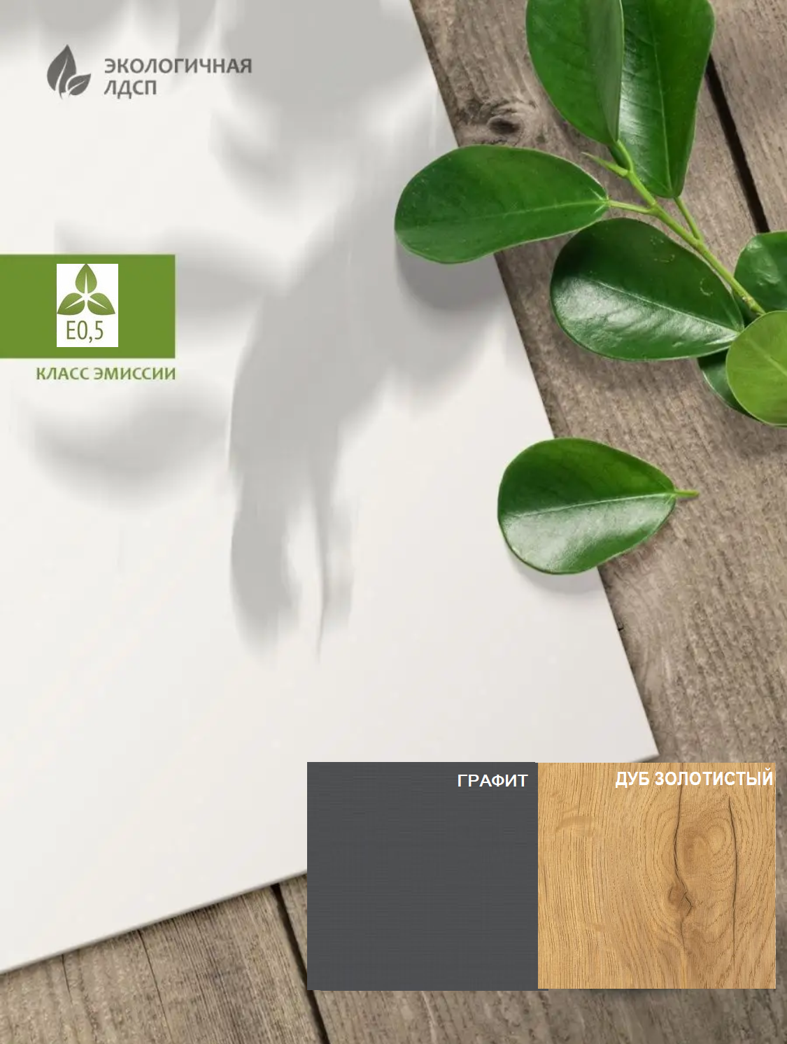 Мебель выполнена из сертифицированного, качественного, экологически чистого ЛДСП класса Е0,5 в популярных расцветках дуб золотистый + графит.