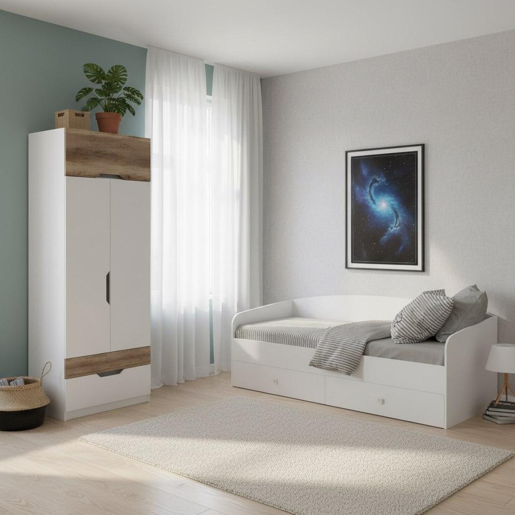 Идеально вписывается в детскую комнату, шкаф очень практичный и вместительный, по своим габаритам отлично подходит и для небольших комнат.
