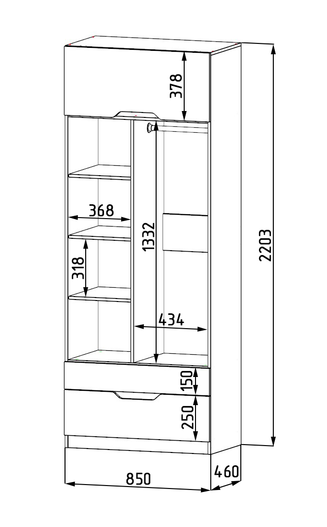 ширина 850 х высота 2203 х глубина 479 мм