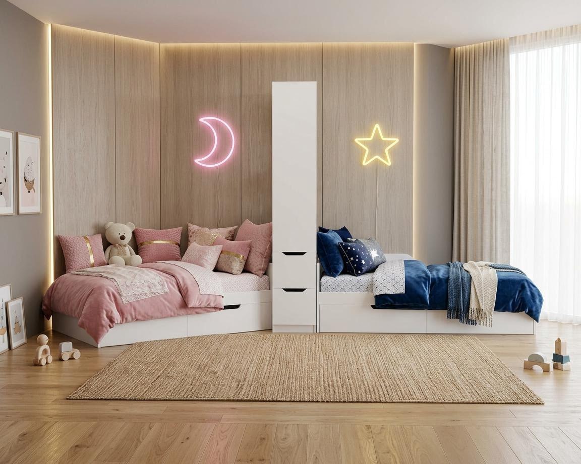 Воздушный белый цвет мебели визуально расширяет пространство и подходит детям любого пола.