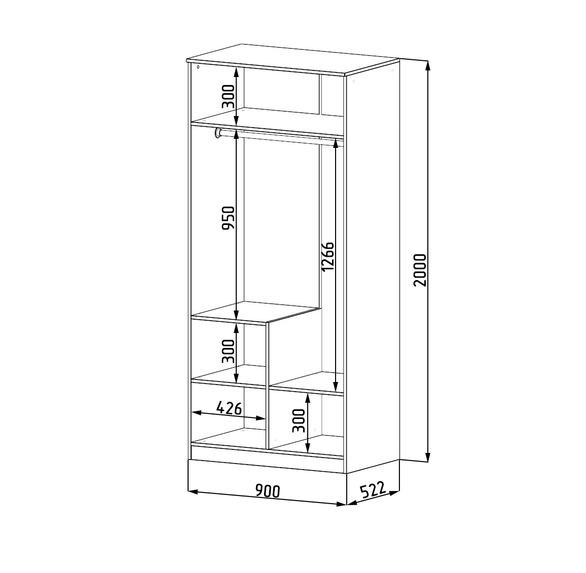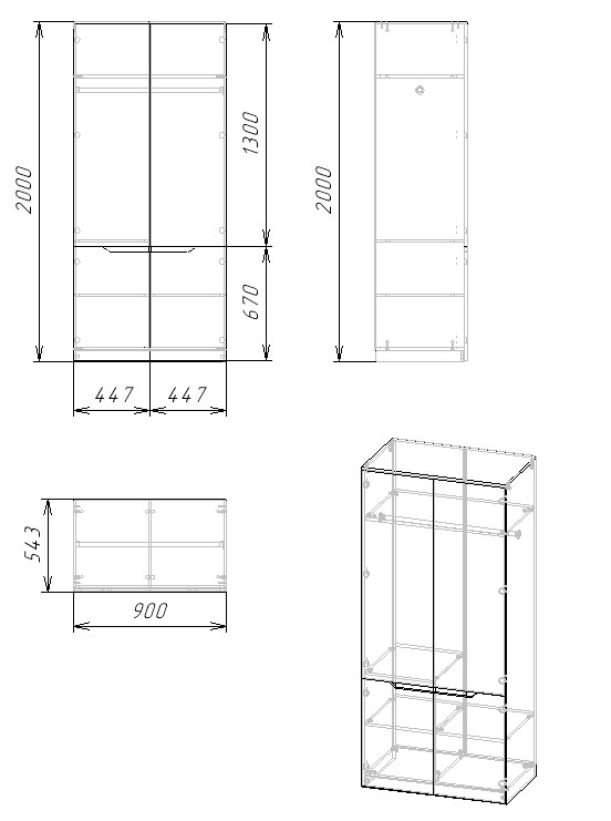Габариты: ширина 900, высота 2000, глубина 543 мм