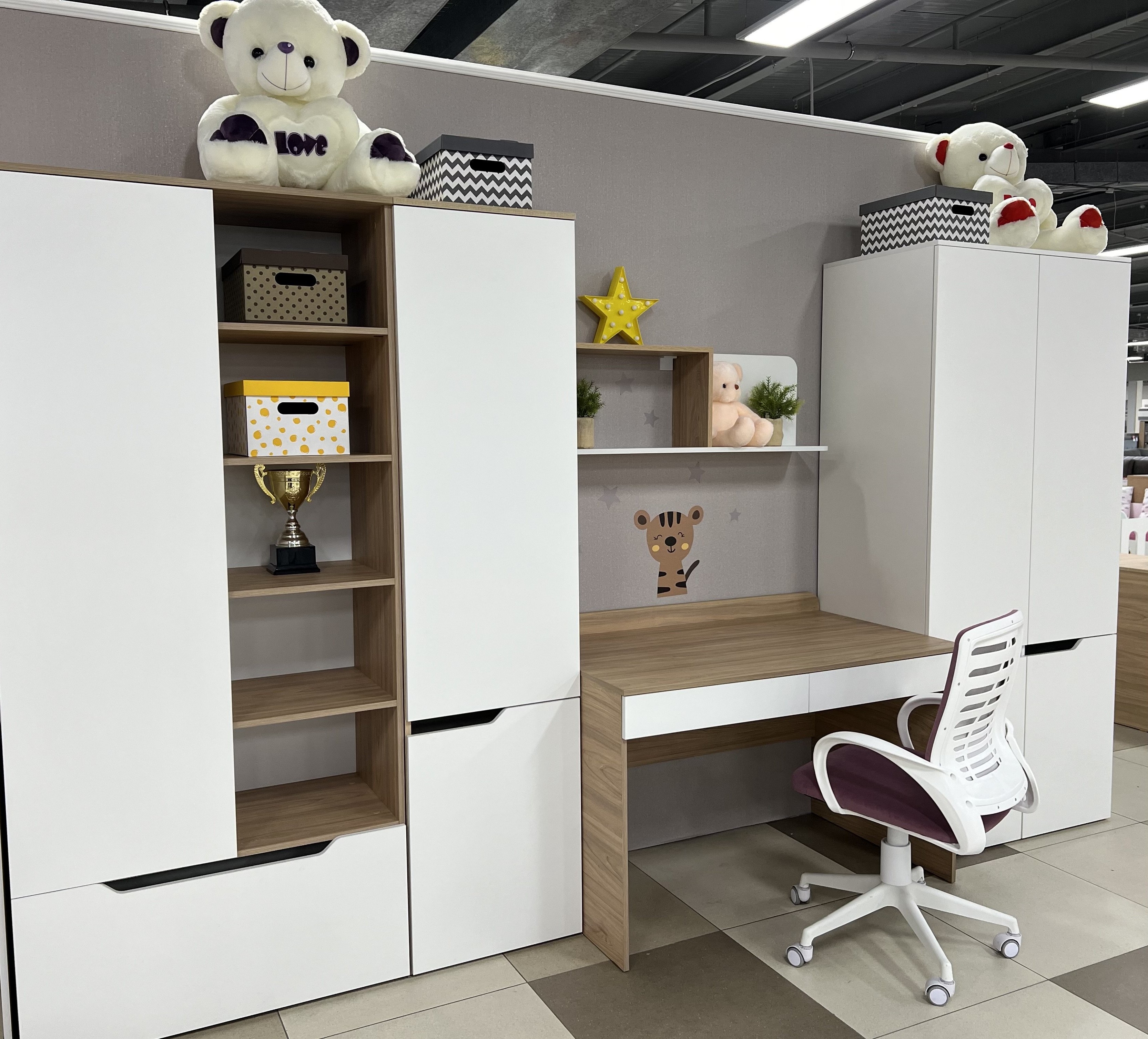 Мебель выполнена из сертифицированного, качественного, экологически чистого российского ЛДСП в цветах вяз швейцарский + белый.