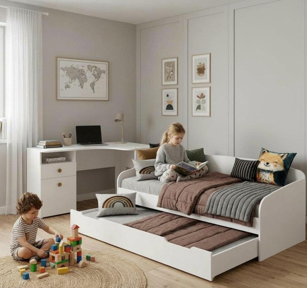 —Кровать выдвижная Двушка + стол угловой Умка