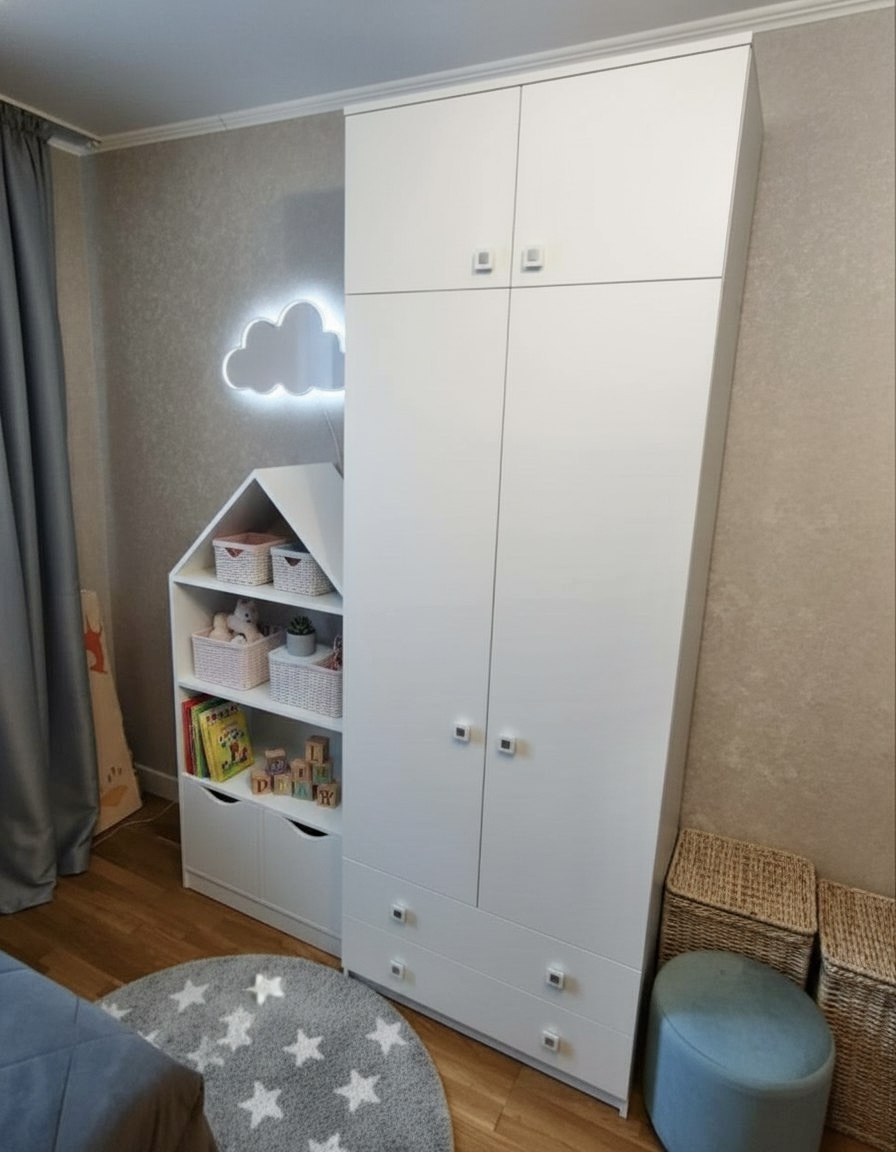<comment>Заказывали ребёнку шкаф и кровать белого цвета. Оттенок цвета очень приятный, материал супер, ручки шкафа удобные и крепкие) отдельное спасибо доставке и мастеру по сборке, за оперативность. </comment>