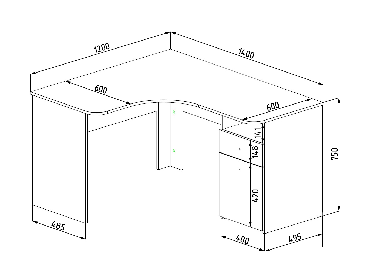 Габариты: ширина 1400 х высота 750 х глубина 1200 мм