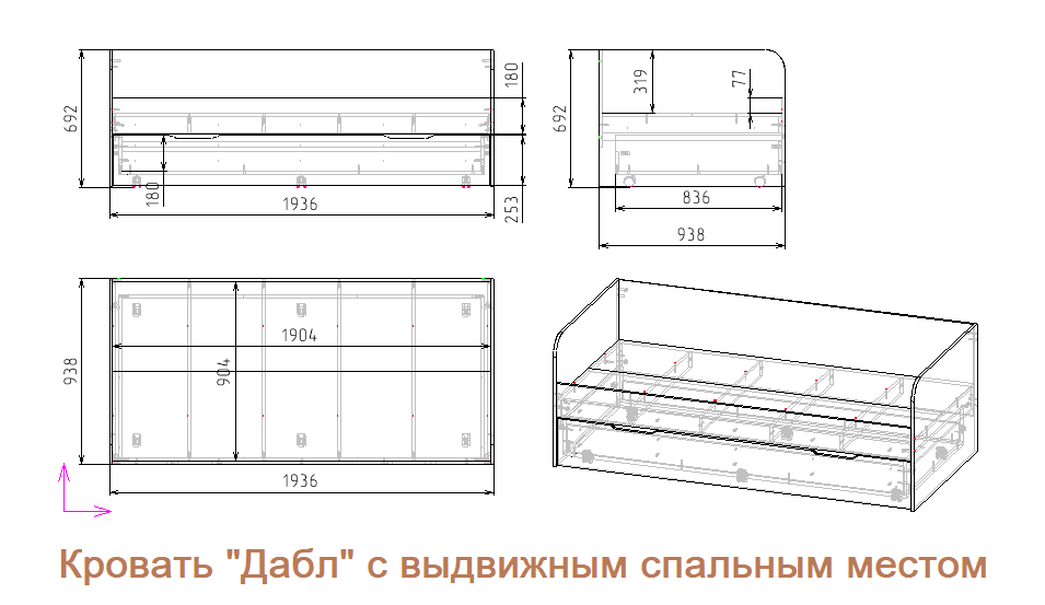 Представляем вам популярную кровать "Дабл" с дополнительным выдвижным спальным местом.