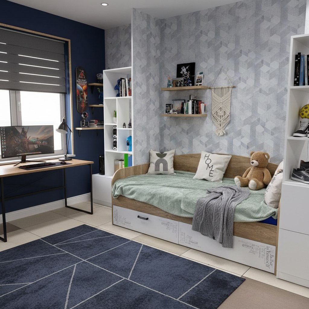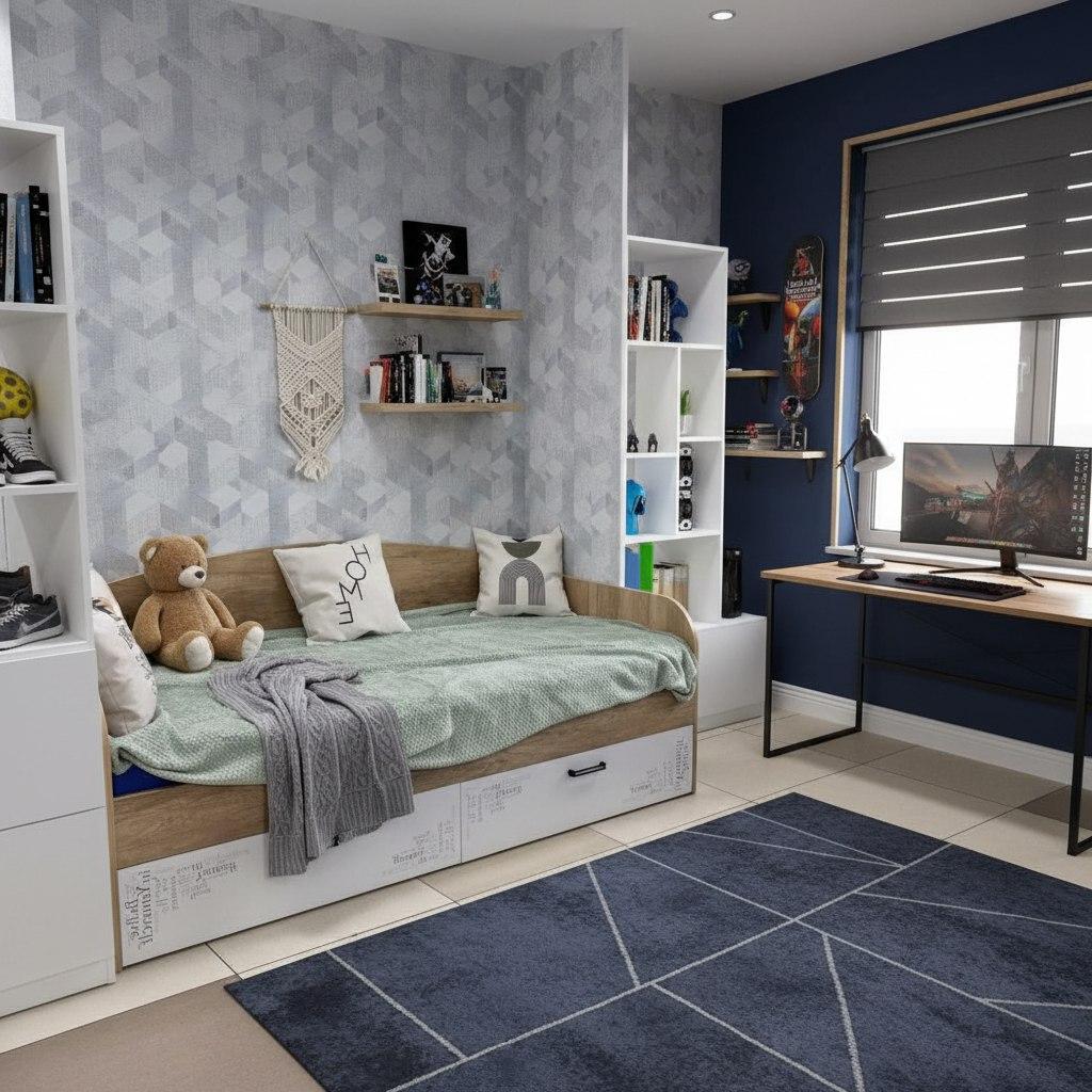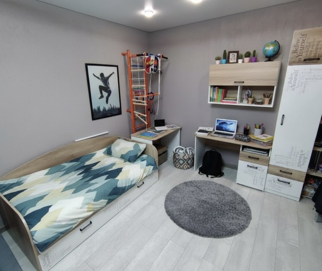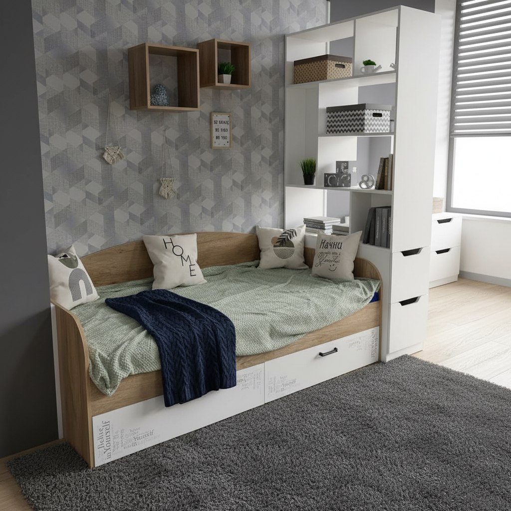 Данная модель кровати выполнена в современном дизайне, превосходно дополнит интерьер детской комнаты.