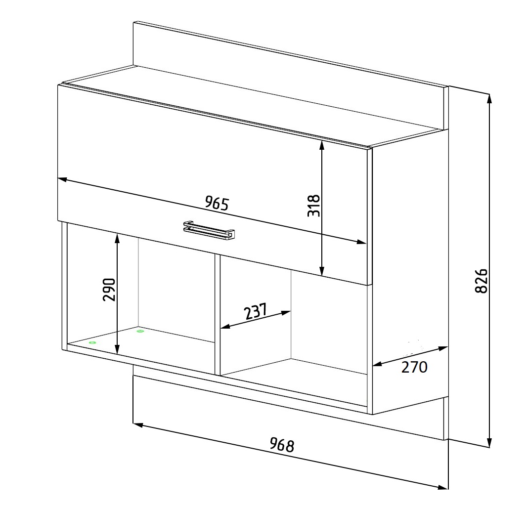 Габариты: ширина 968 х высота 826 х глубина 270 мм