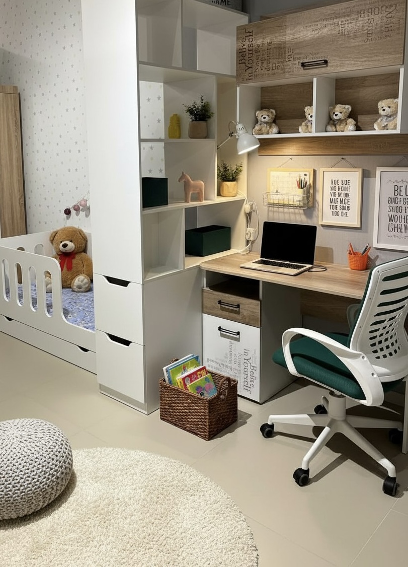 Мебель выполнена из сертифицированного, качественного, экологически чистого ЛДСП Е0,5 в сочетании цветов дуб каньон + белый и оформлена принтом.