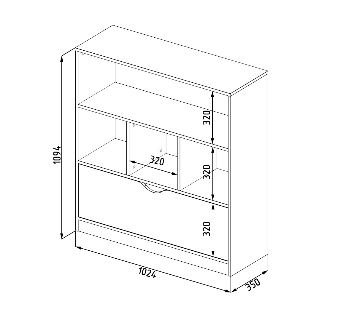 Габариты: высота 1094, глубина 350, ширина 1024 мм